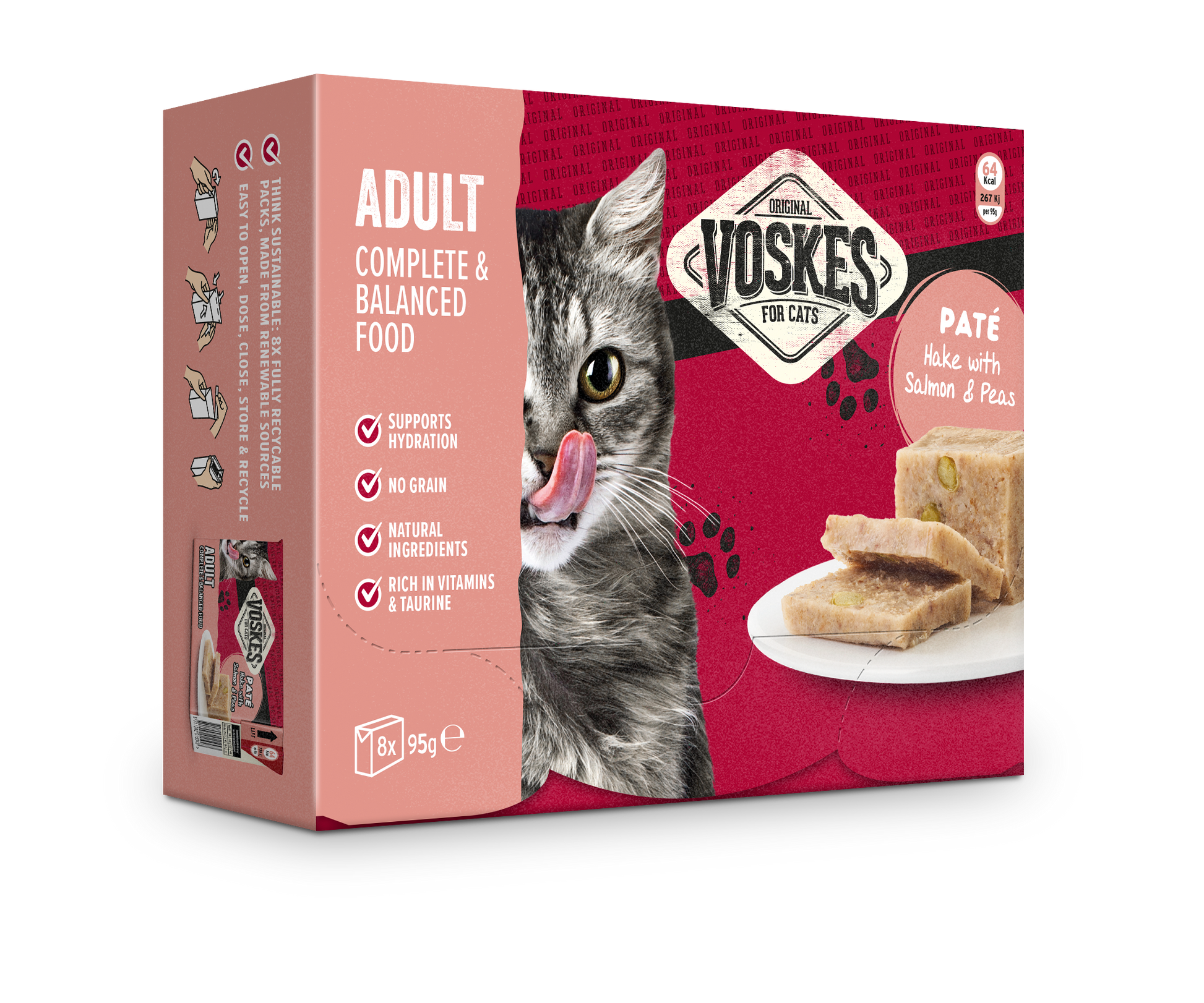 VOSKES PATE HAKE WITH SALMON & PEAS 8 X 95G